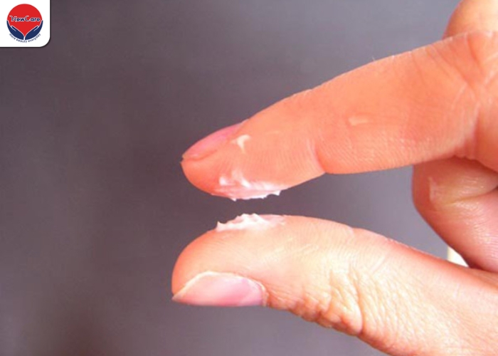 Khí hư trắng vón cục, giống như bã đậu, không tan, không mùi hoặc hơi chua